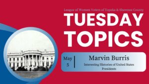 Join us at the Topeka & Shawnee County Public Library for our monthly civic education presentation. In May, Marvin Burris will present on the topic of “Interesting Histories of United States Presidents.” View all the event details here.