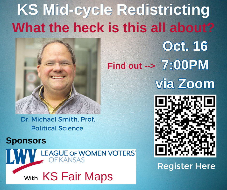 LWVK Redistricting PositionAfter the 2022 round of redistricting, the Kansas League (LWVK) updated it’s position on legislative and congressional redistricting. A committee of League members from across the state created the revised position which was adopted at the League’s convention on April 22, 2023. A recording of the briefing on the position presented for League members during the spring of 2023 is posted below. LWVTSC members met in February to consider concurrence with the new state position. The members in attendance voted unanimously to concur with the position. 2022 Redistricting in TopekaThe City’s Council district boundary lines are redrawn every 10 years following the U.S. Census to rebalance the number of residents in each district. As required by the City’s Home Rule Charter, the Council appointed a Redistricting Commission which recommended a new district plan to the Council on September 1, 2022. The recommended districts were adopted by the Council on November 1, 2022, and will be used for the 2023 City Council elections.